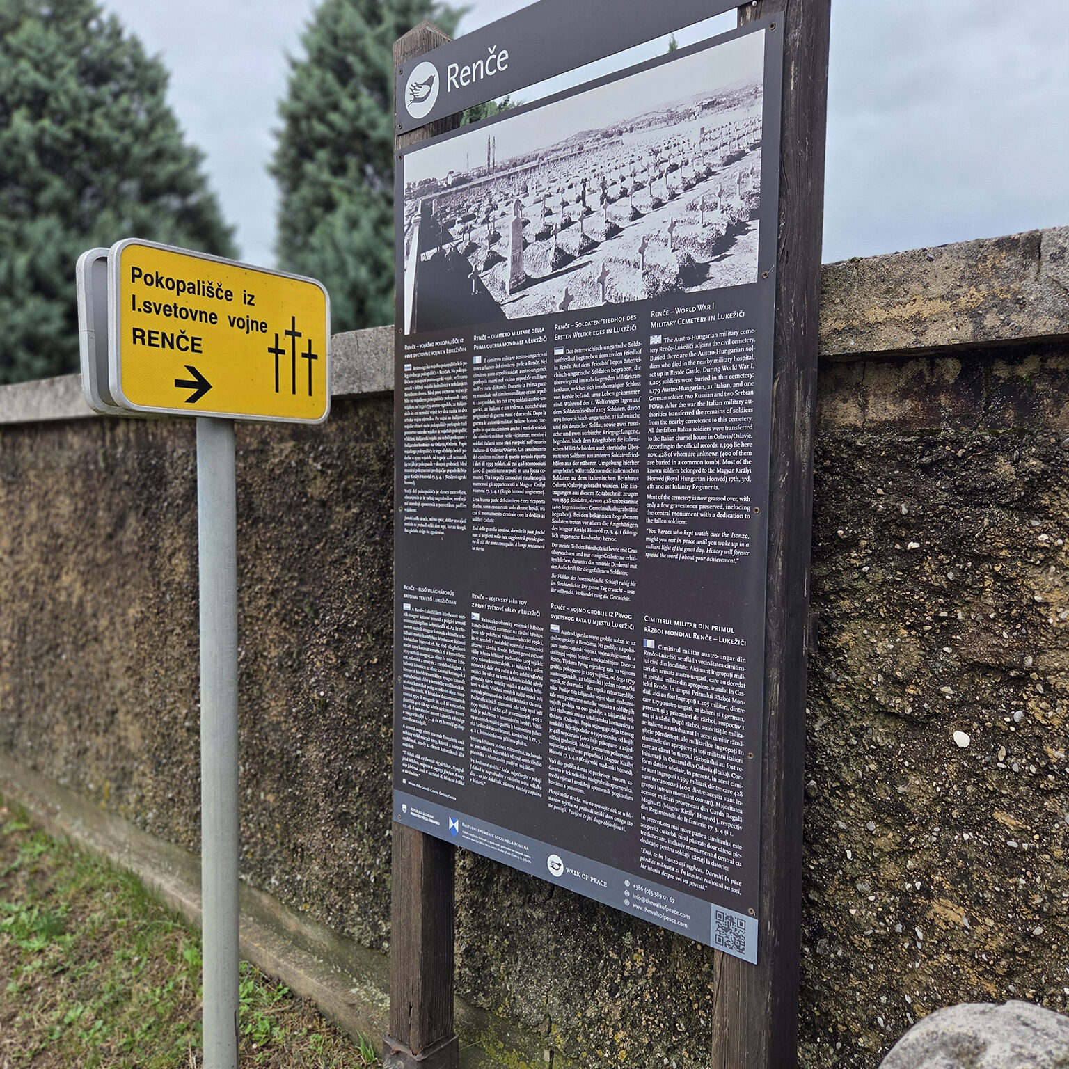The Austro-Hungarian military cemetery Renče–Lukežiči adjoins the civil cemetery. Buried there are the Austro-Hungarian soldiers who died in the nearby military hospital, set up in Renče Castle. During World War I,