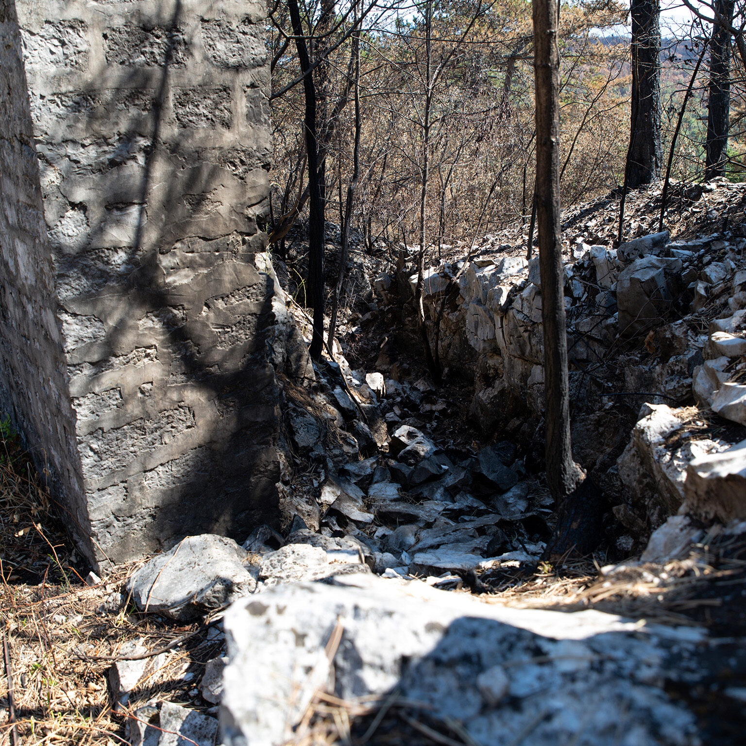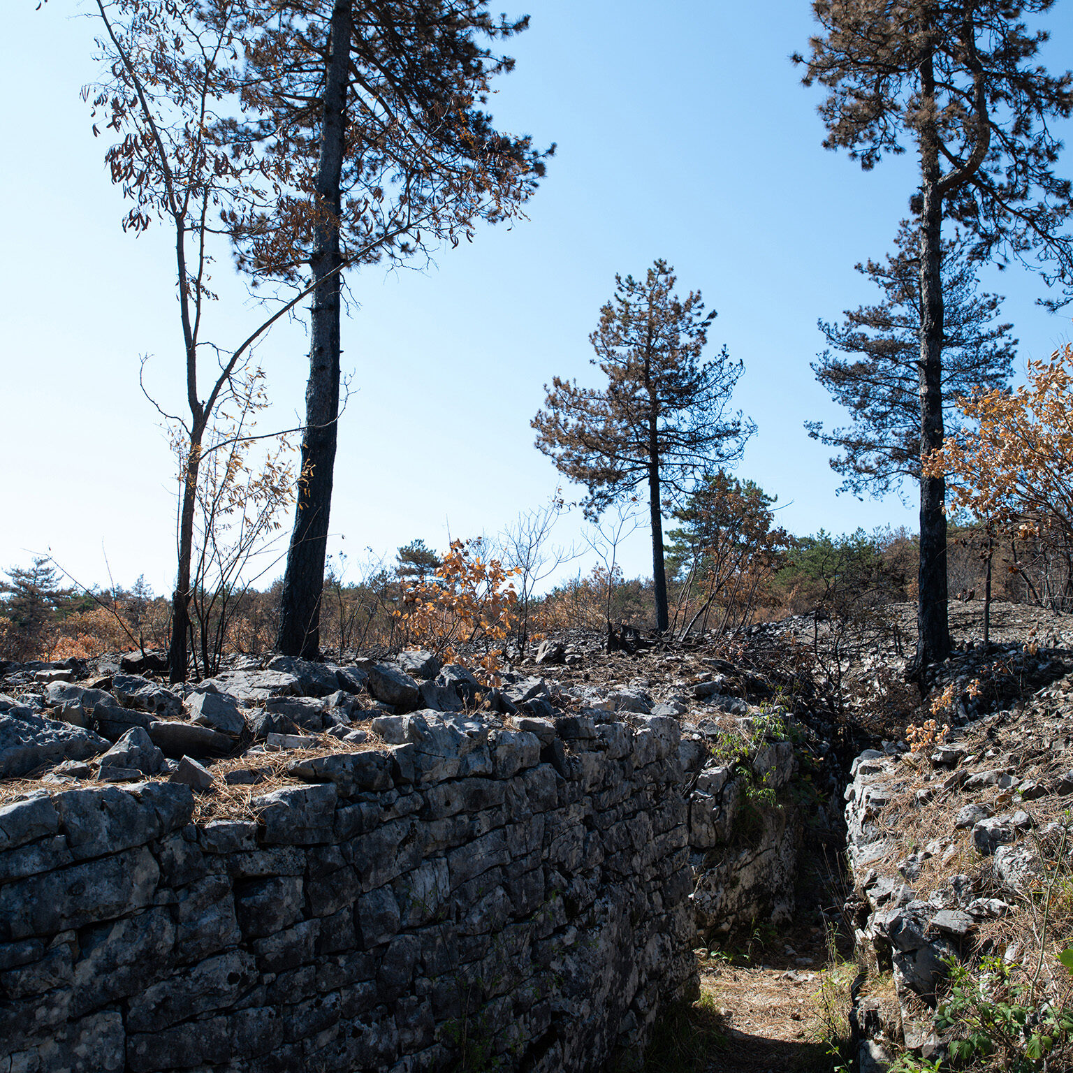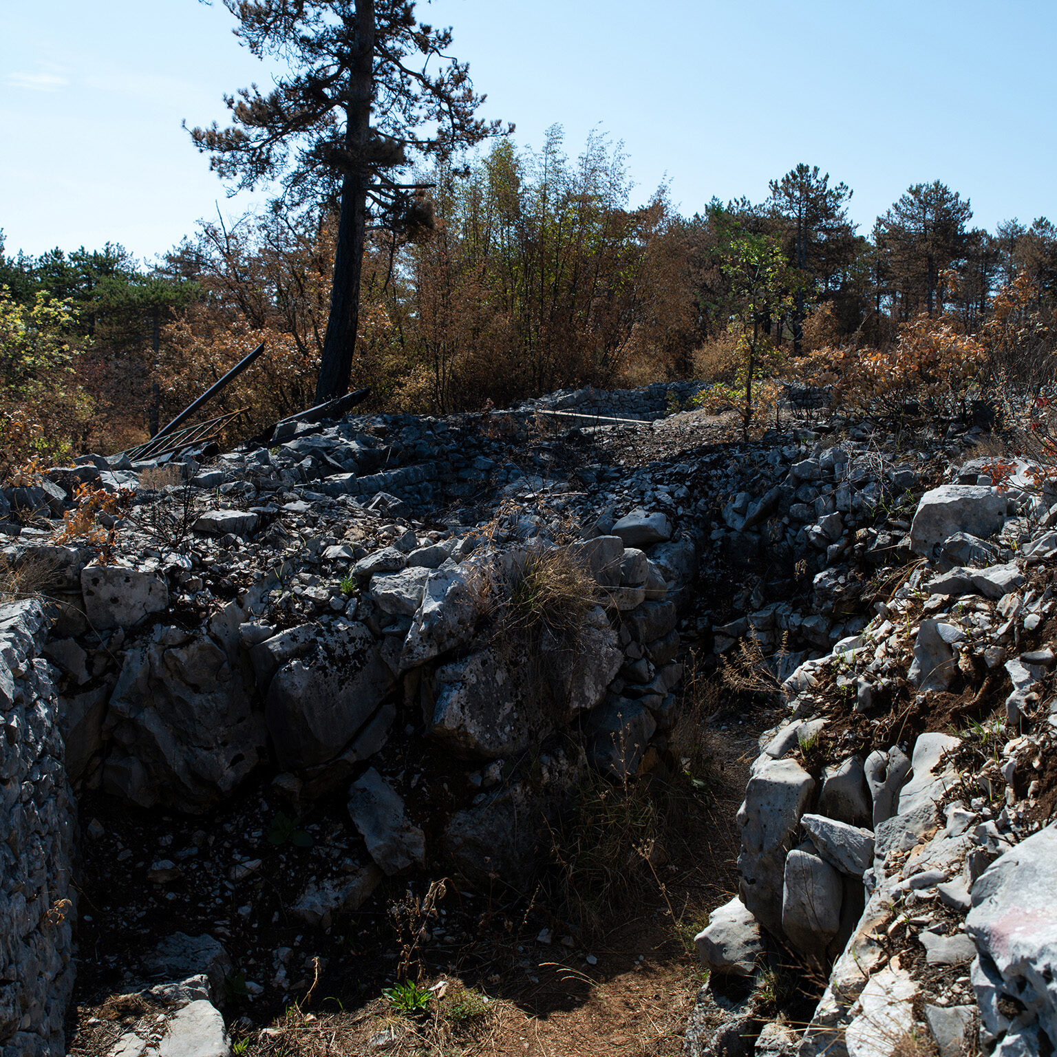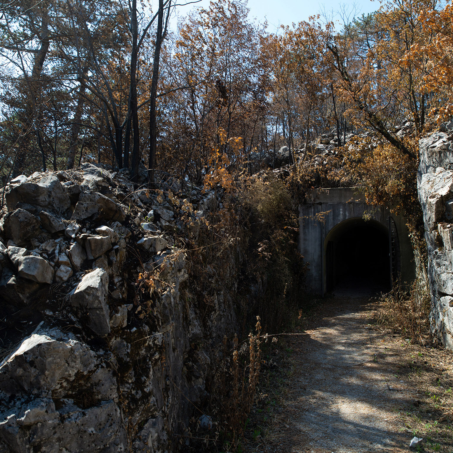De pistooltunnel van Mt. Brestovec werd tussen januari en augustus 1917 onder de top van deze hoogte gegraven. Binnen zijn werden acht 149mm geweren geïnstalleerd, aangeduid op de Comeno Karst, verdeeld in vier groepen om een breder schietbaan te verkrijgen.
