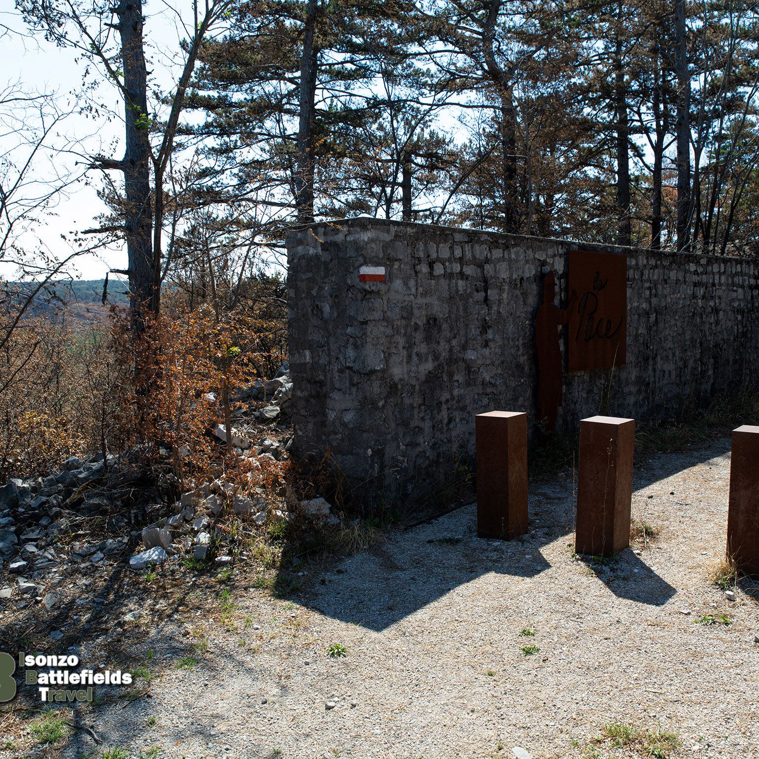 Buiten, in de buurt van de ingang van de “Italiaanse infanterist”, kunt u het woord “Vrede” lezen, terwijl aan de andere kant (de ingang van de “Oostenrijks-Hongaarse infanterist”) de bewoording “We want peace” kan worden gezien. Ze waren onderdeel van twee graffiti gevonden op Mt. Brestovec.