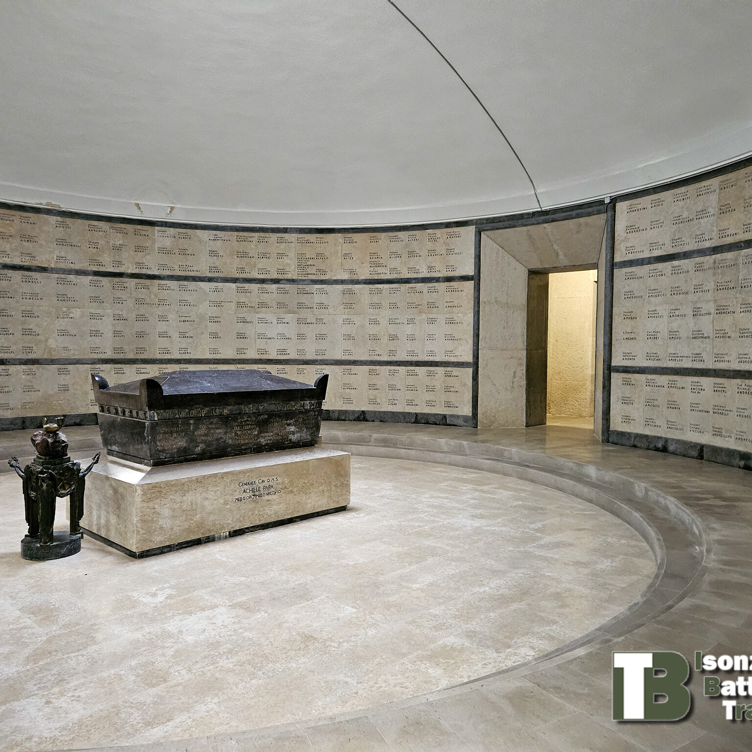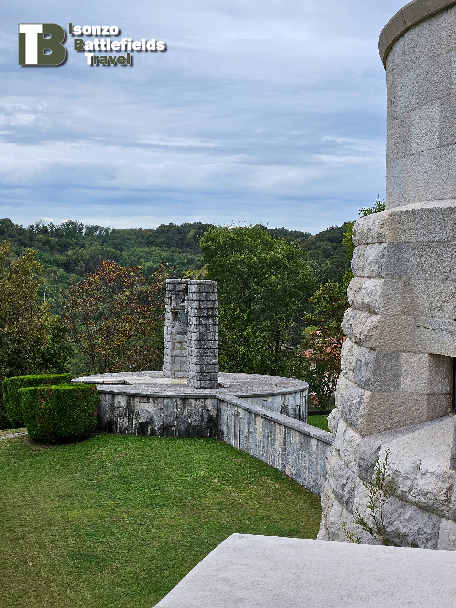 All towers are connected through underground tunnels and have crypts. The most important one is the central tower, which accommodates the tombs of thirteen soldiers who were awarded the Gold Medal for Valour, including General Achille Papa, who perished on 05th October 1917, General Ferruccio Trombi, shot to death in Oslavia on 28th November 1915 and General Alceo Catalocchino, who fell in the Natisone Valleys on 27th August 1917.