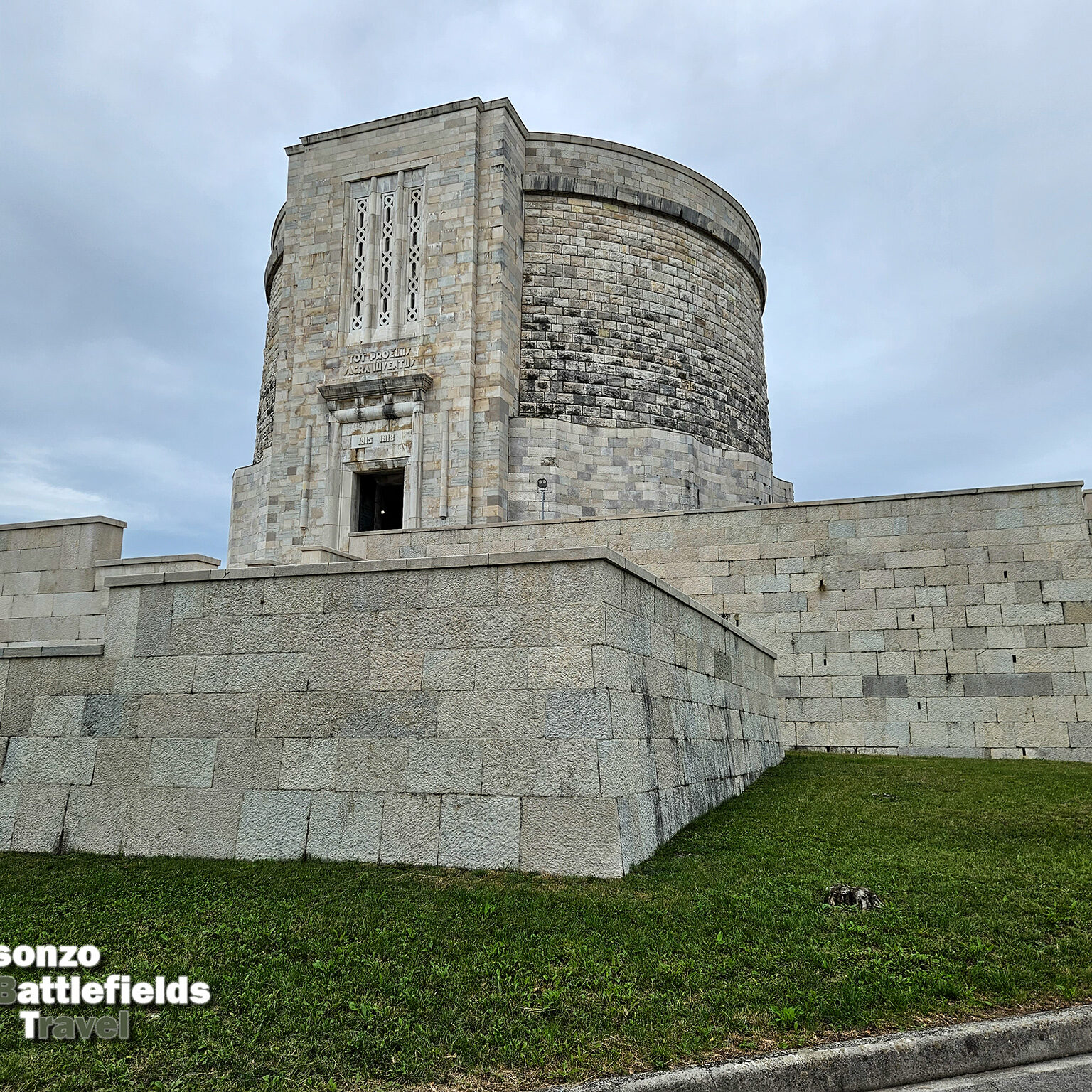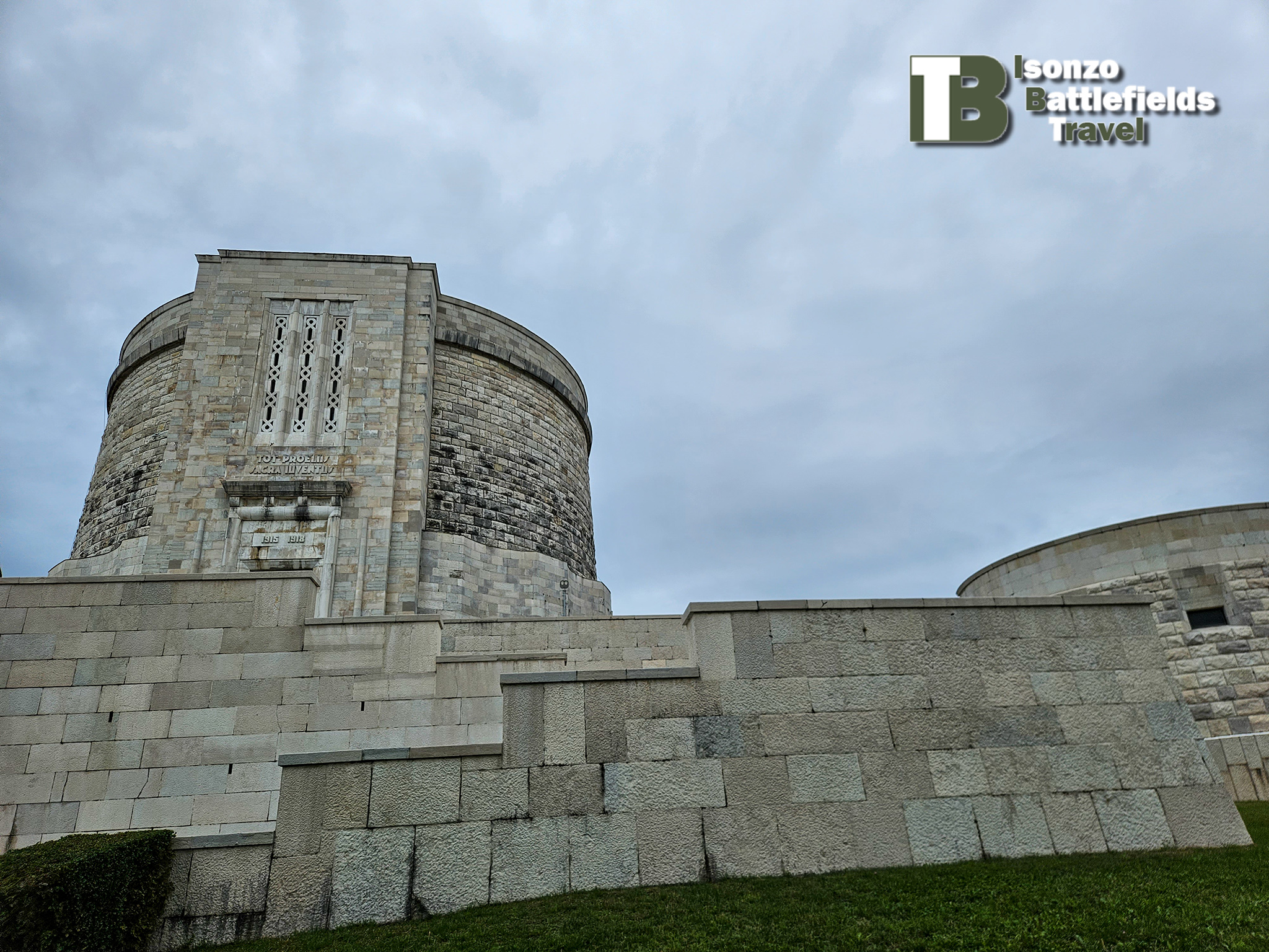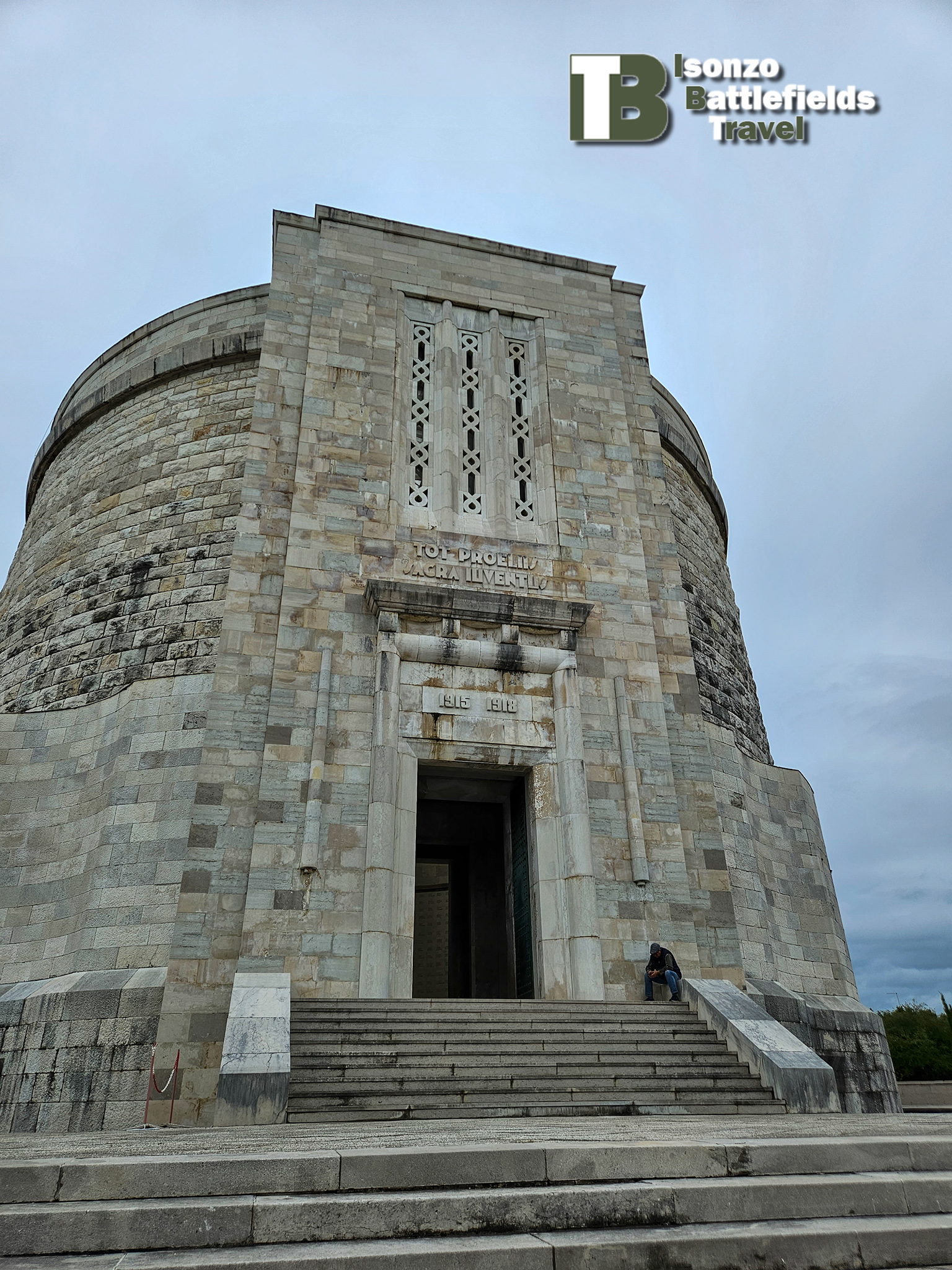 The charnel house is situated in the hamlet of Oslavia/Oslavje near Gorizia/Gorica. It was built in 1938 after the plans of architect Ghino Venturi of Rome. The monument was created to accommodate the remains of the soldiers who fell in different battles fought around Gorizia and Tolmin (now part of Slovenia) during the Great War. Buried in the charnel house are mortal remains of 57,739 soldiers who were transferred from the military cemeteries in the area from the village of Kamno to Gorizia.