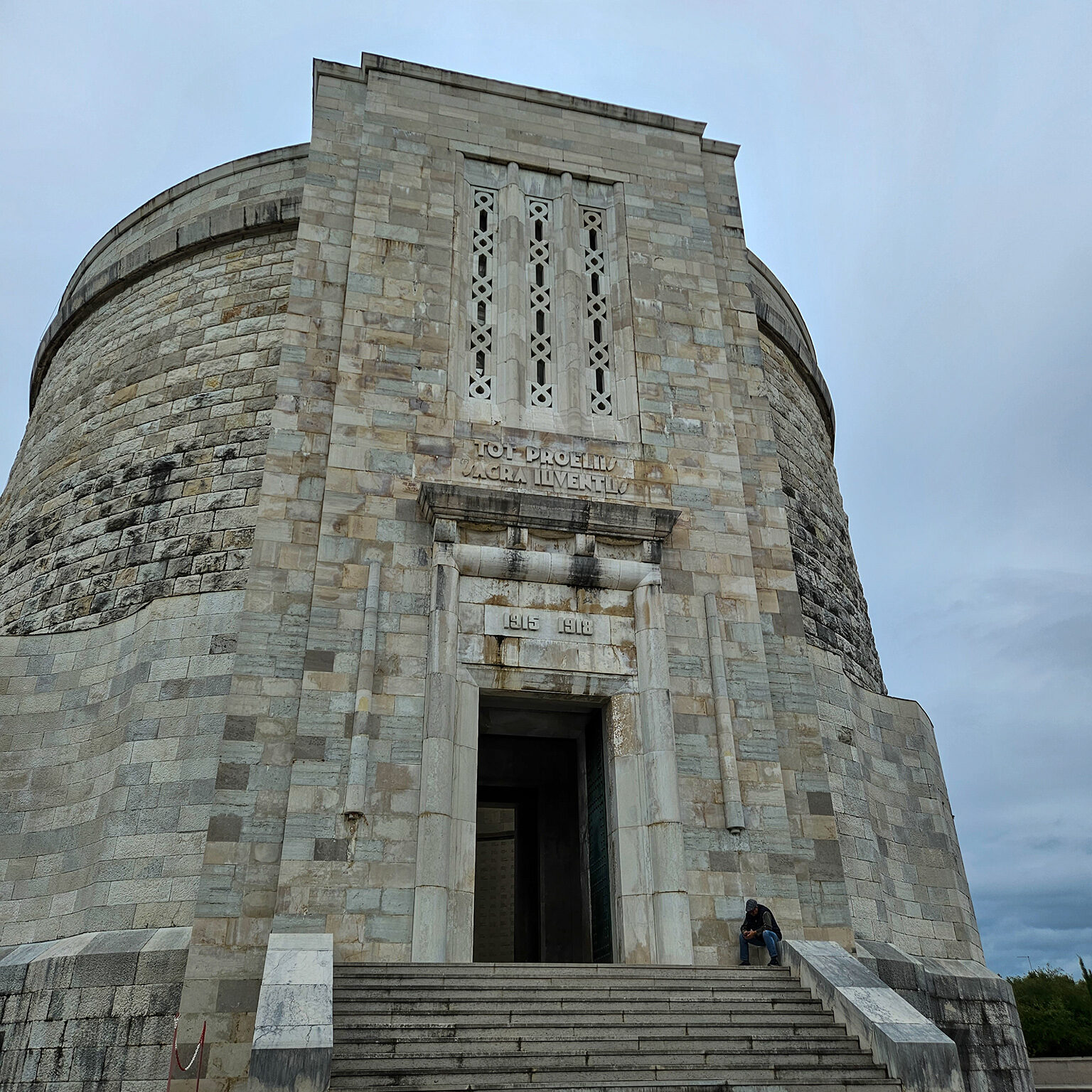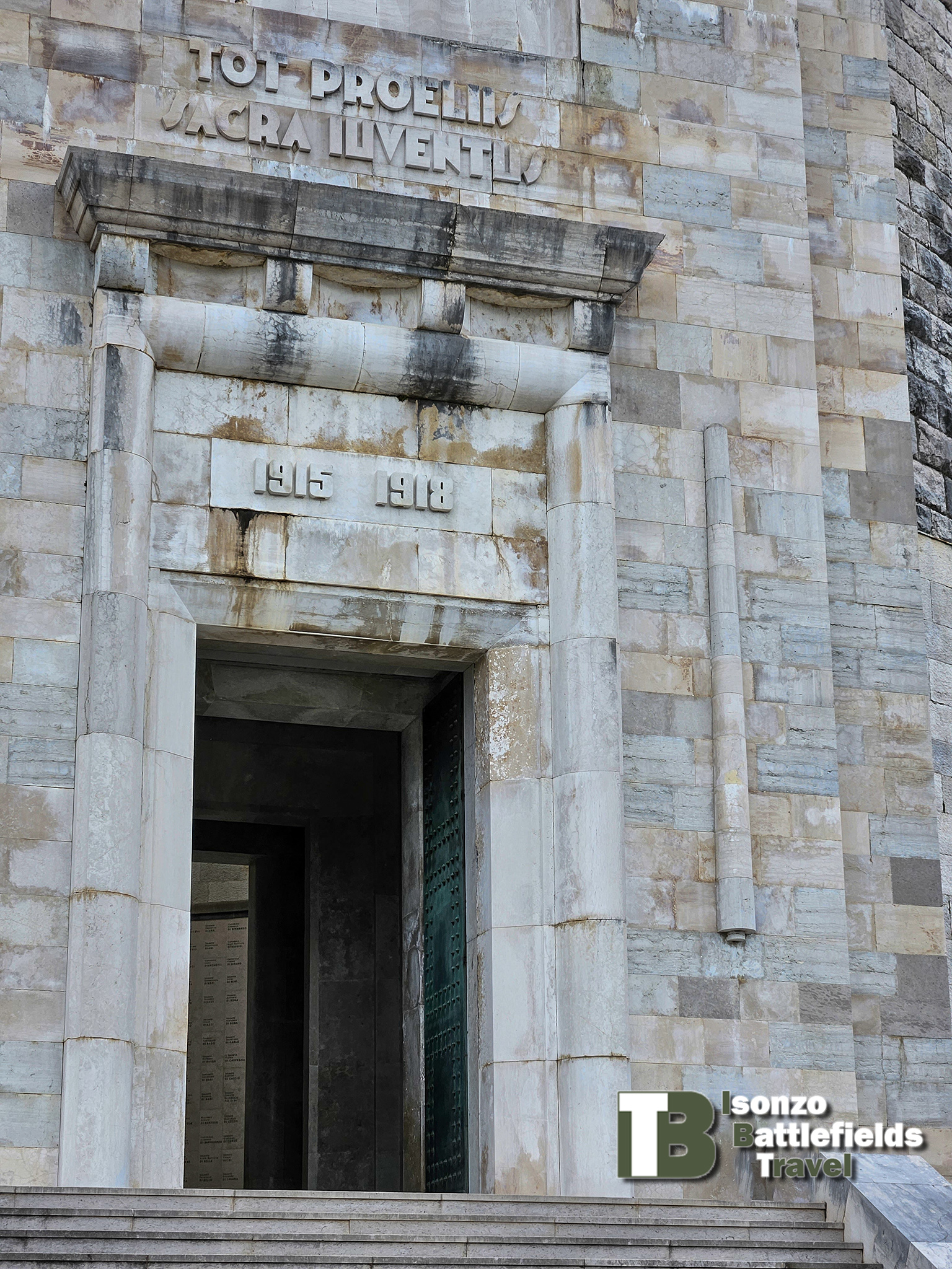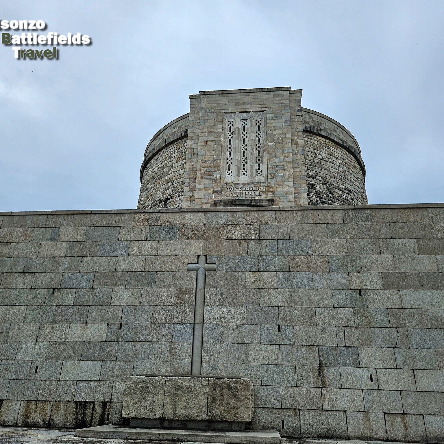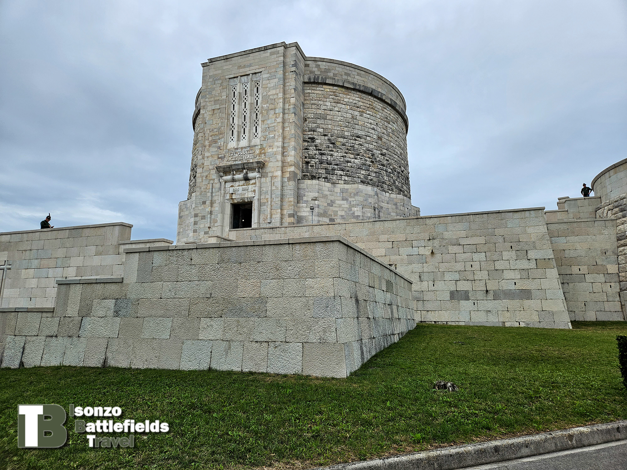 The charnel house is situated in the hamlet of Oslavia/Oslavje near Gorizia/Gorica. It was built in 1938 after the plans of architect Ghino Venturi of Rome. The monument was created to accommodate the remains of the soldiers who fell in different battles fought around Gorizia and Tolmin (now part of Slovenia) during the Great War. Buried in the charnel house are mortal remains of 57,739 soldiers who were transferred from the military cemeteries in the area from the village of Kamno to Gorizia.