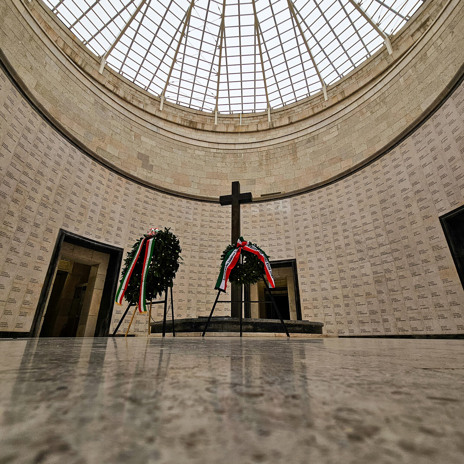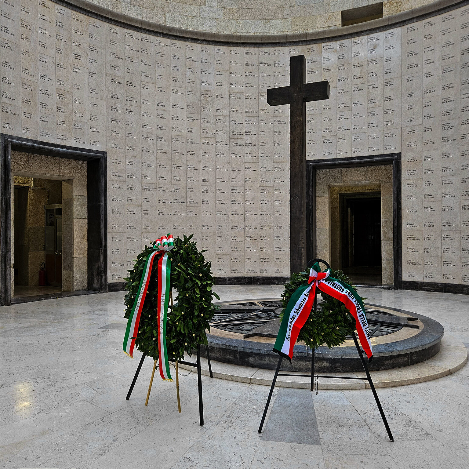 The main tower houses also a large cross in black marble, while outside, near the left vertex of the Ossuary, a bell named “Chiara” rings every day at dusk to honour all fallen soldiers. A solemn ceremony commemorating the taking of Gorizia by the Italian army is held on 08th August every year.